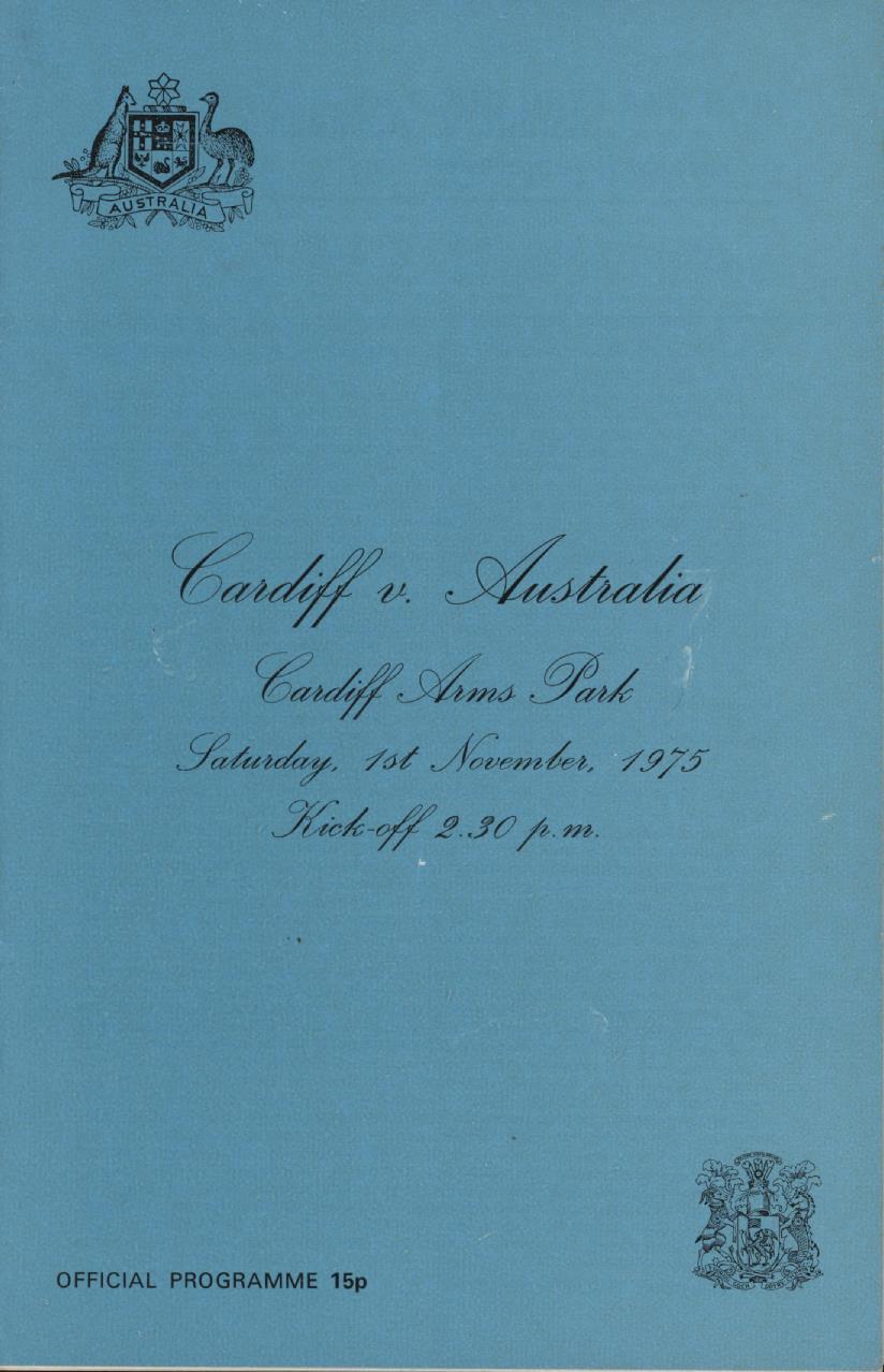 CARDIFF V AUSTRALIA 1975 RUGBY PROGRAMME