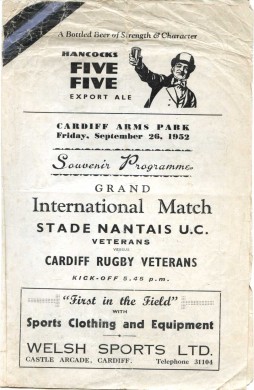 Rugby Union » Rugby Union Programmes » Other Representative Teams » CARDIFF RUGBY VETERANS V STADE NANTAIS U.C. VETERANS 1952