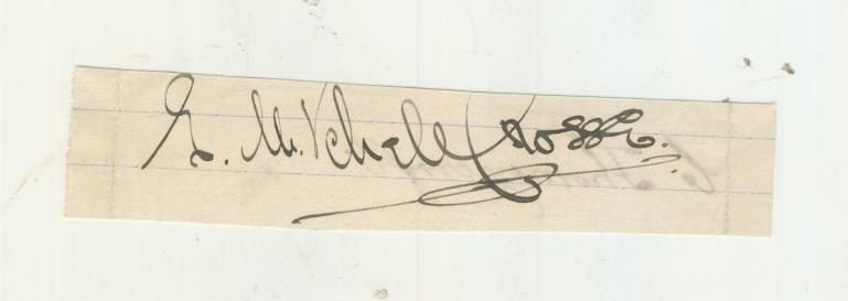 Thorneycroft played two matches for Northants in 1907 and Crosse captained the team in the same season. Signed in ink (one to each side) on small cut piece - part of Crosse's autograph is trimmed.