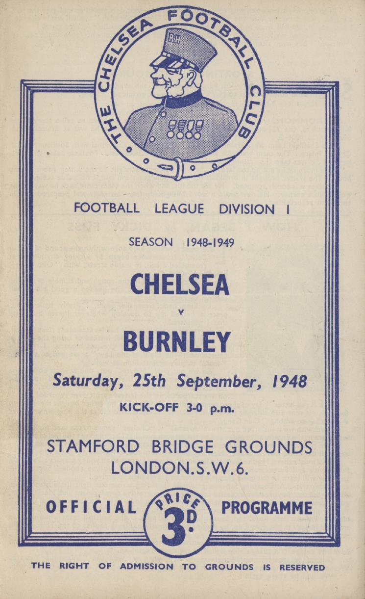 Football » Football Programmes » Chelsea Home Matches » CHELSEA V BURNLEY 1948-49 FOOTBALL PROGRAMME