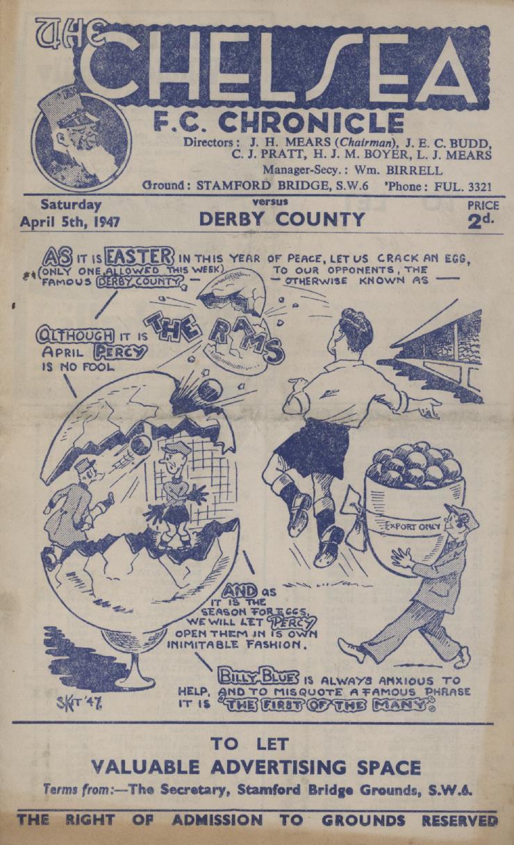 Football » Football Programmes » Chelsea Home Matches » CHELSEA V DERBY COUNTY 1946-47 FOOTBALL PROGRAMME