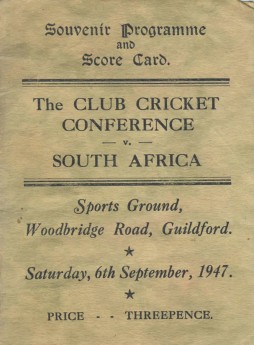 Cricket » Cricket Scorecards » Representative Teams » CLUB CRICKET CONFERENCE V SOUTH AFRICA (GUILDFORD) 1947 CRICKET SCORECARD - LAST MATCH OF THE TOUR