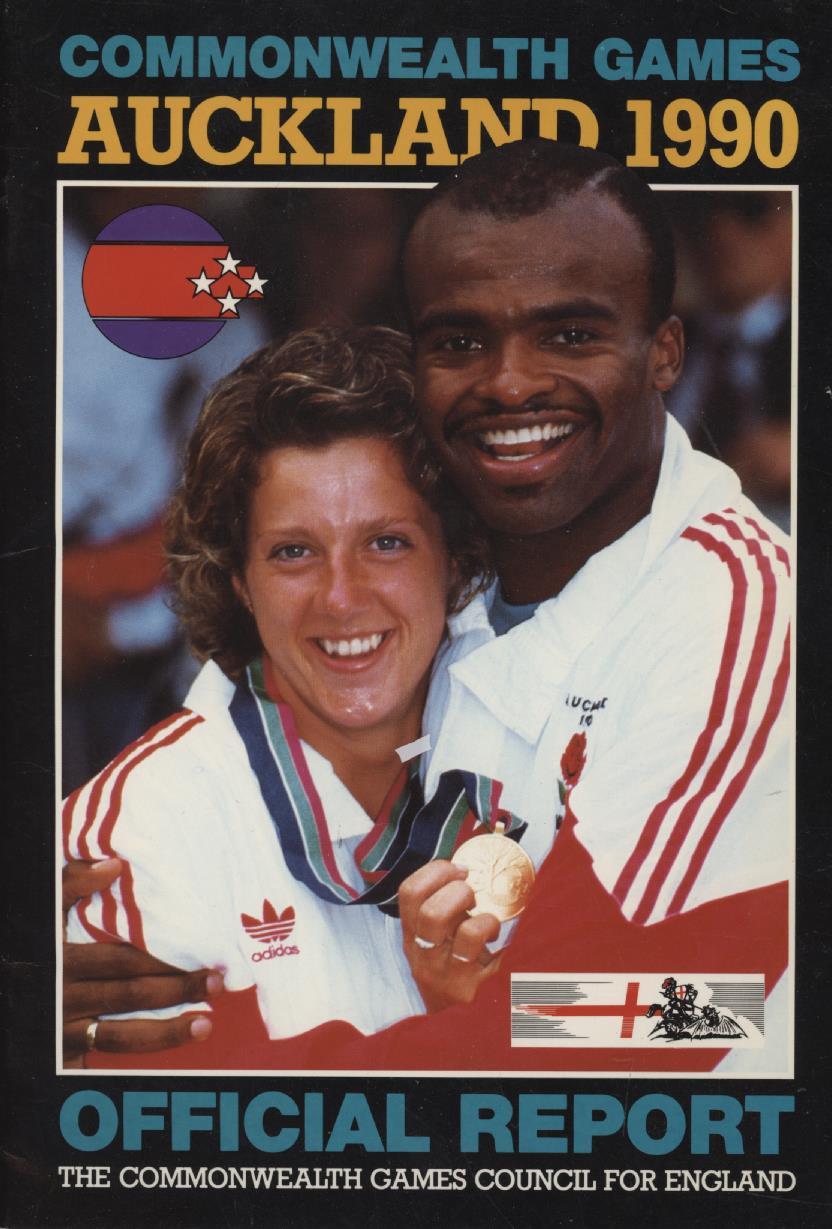 Official booklet reporting on the performance of England's 1990 Commonwealth Games Team at Auckland, including lists of those involved plus all results and a record of English medal-winners, including cover-girl and boy, Sally Gunnell and Kriss Akabusi, who both took gold.