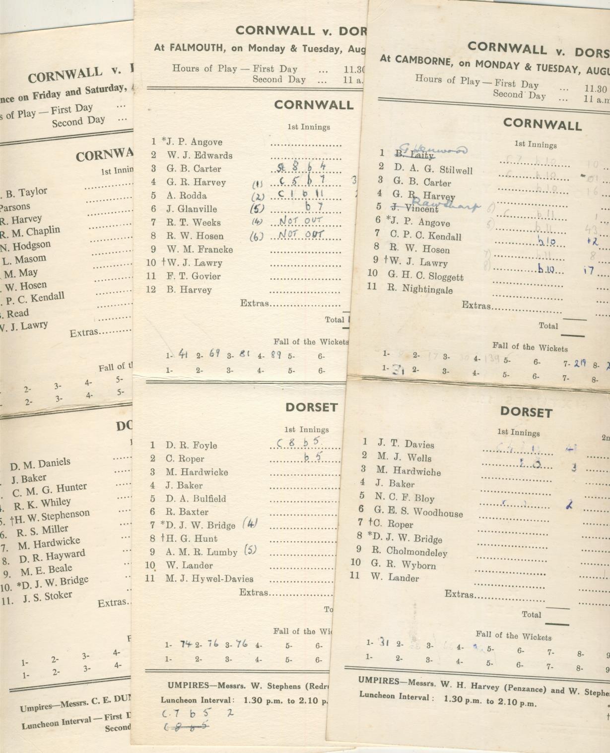 Cricket » Cricket Scorecards » Minor Counties/Clubs » CORNWALL V DORSET CRICKET SCORECARDS - 1961, 1962 & 1966