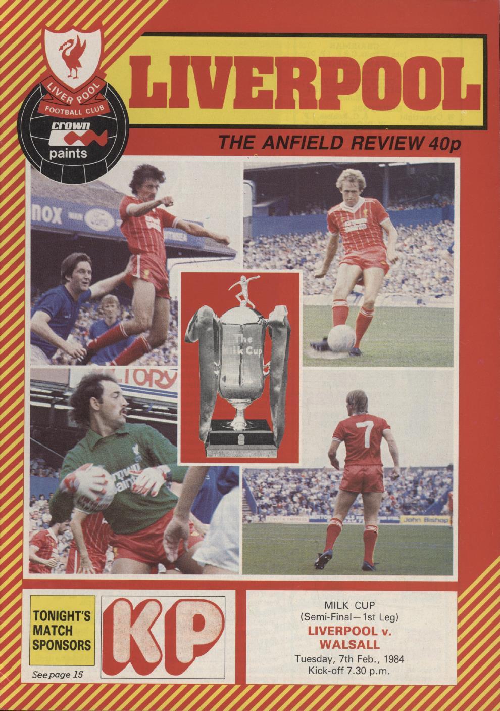 LIVERPOOL V WALSALL 1984 (LEAGUE CUP SEMI FINAL) FOOTBALL PROGRAMME