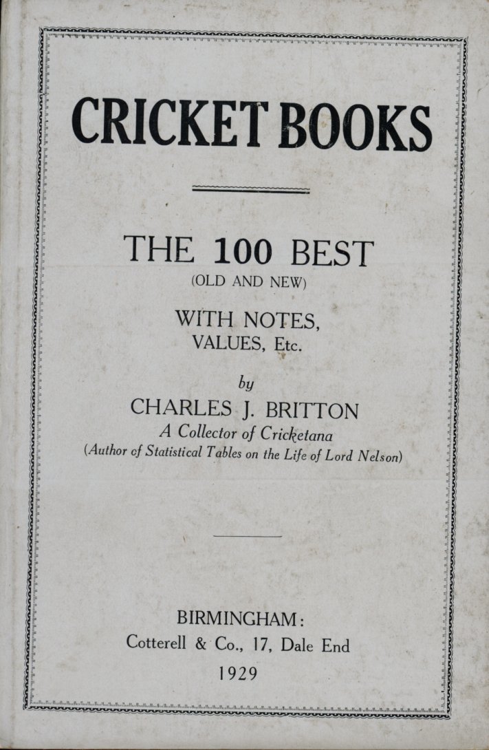 Cricket » Cricket Books » Cricket Reference » CRICKET BOOKS: THE 100 BEST (OLD AND NEW), WITH NOTES, VALUES, ETC.