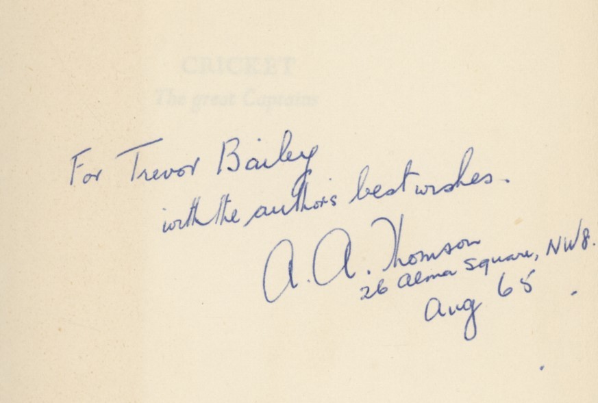 8vo. 208pp. Frontispiece, 8 pages of photographs. Dust-wrapper, lightly rubbed. Good condition. Signed by the author to fly-leaf and dedicated to Trevor Bailey, dated 1965.