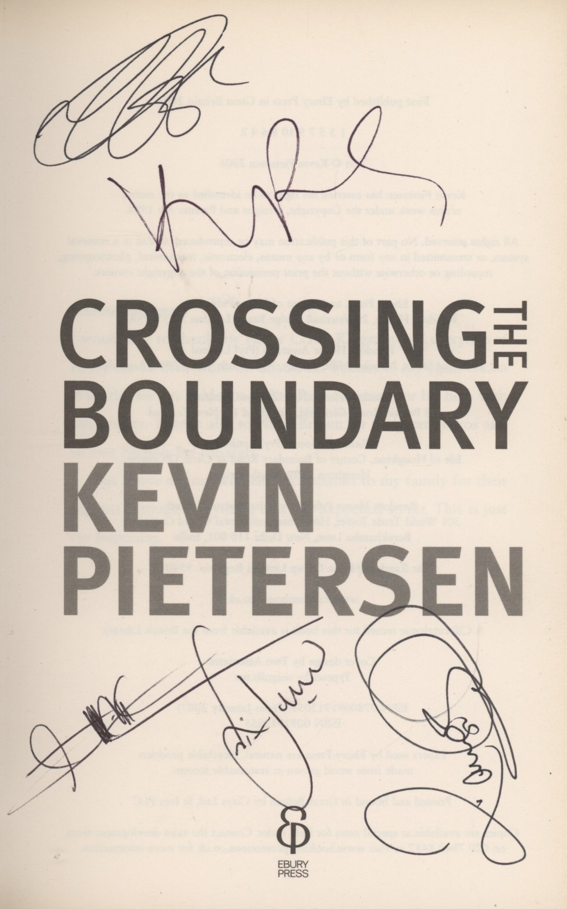 8vo. 336pp. 16 pages of photographs. Dust-wrapper, very good. Signed to title-page by Pietersen, Alastair Cook, Harbhajan Singh, Vikram Solanki and Ravi Bopara.
