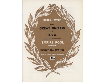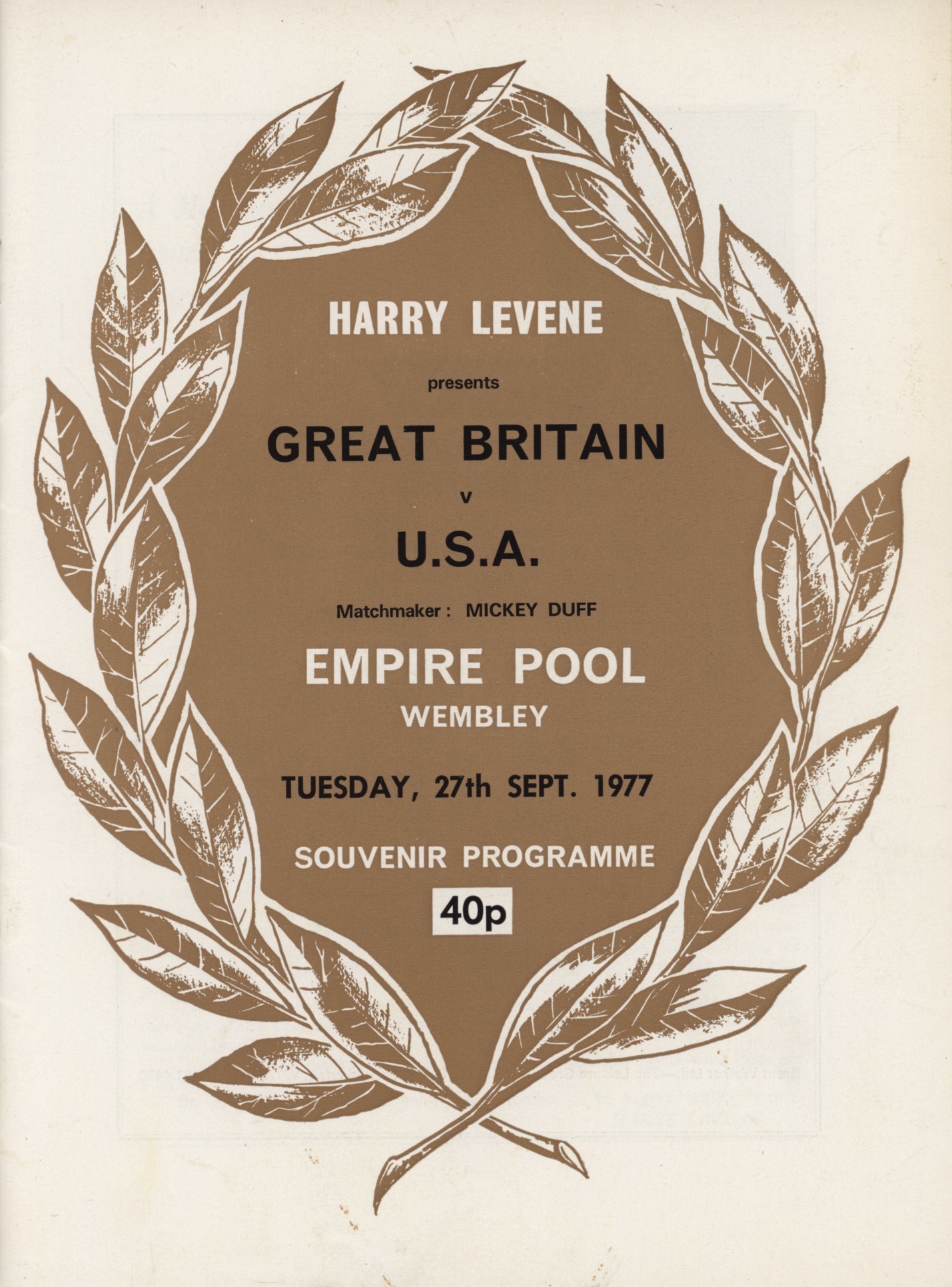 Official programme for the welterweight contest at Wembley, 27 September 1977. Kevin Finnegan, Maurice Hope also on the card.