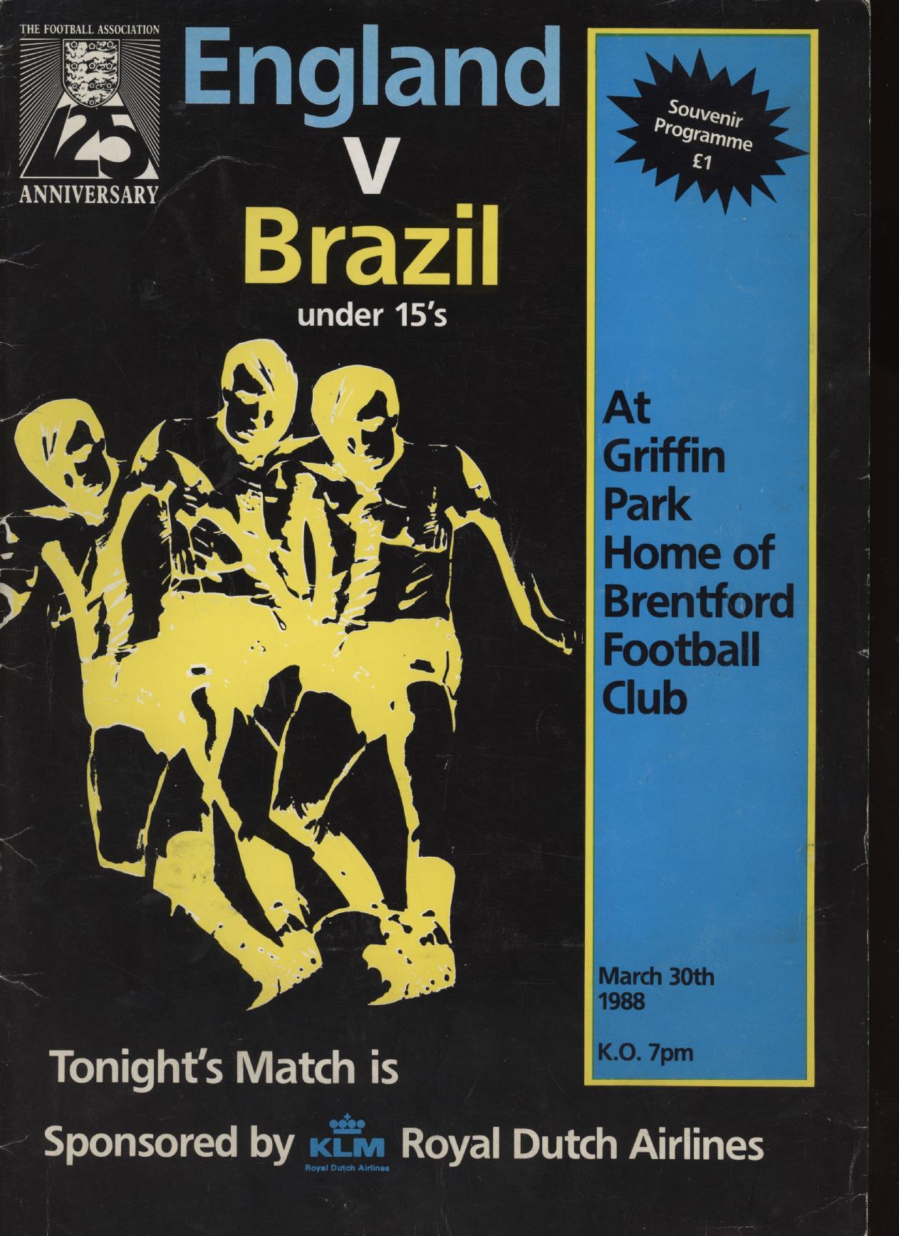 ENGLAND V BRAZIL U15 1988 FOOTBALL PROGRAMME