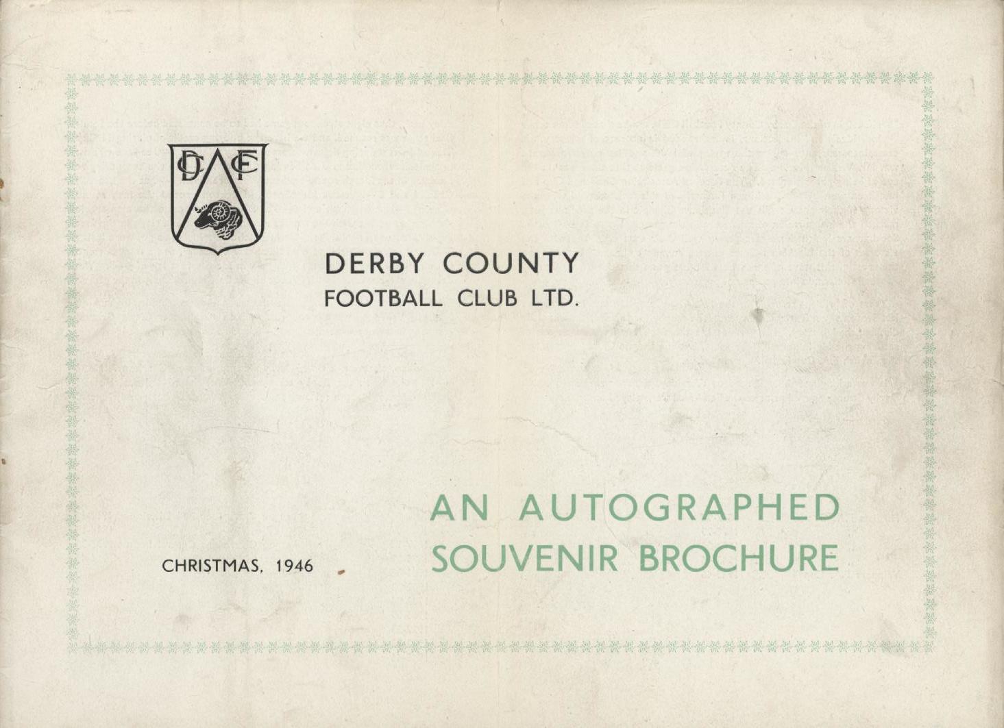 Brochure with photos and printed autographs of the 1946 Derby County team, published Christmas 1946 and celebrating their FA Cup win earlier that year.