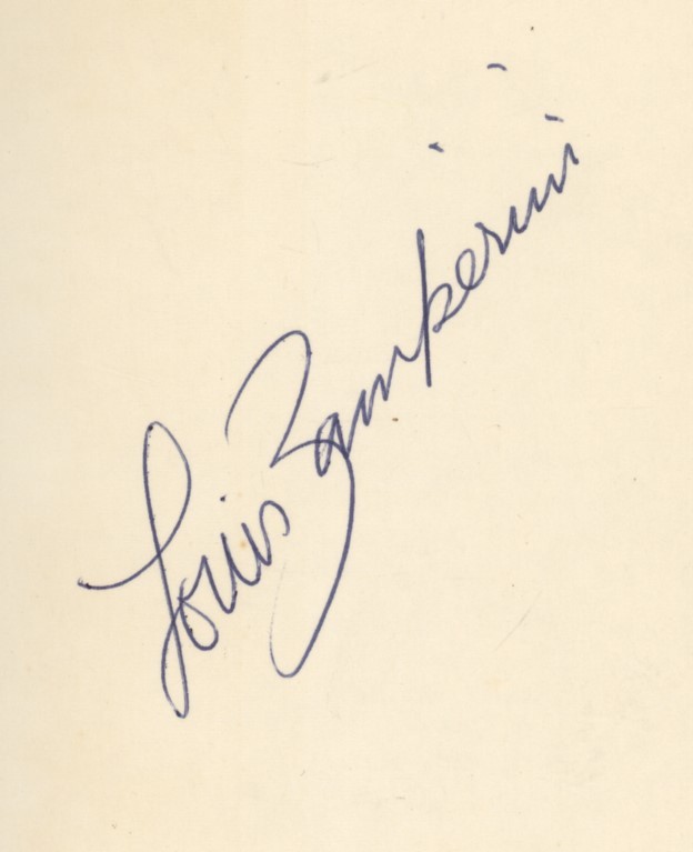 First edition. 8vo. 251pp. Dust-wrapper, rubbed to edges and one small scuff to front. Good condition. Signed very nicely by Zamperini to fly-leaf (not dedicated).