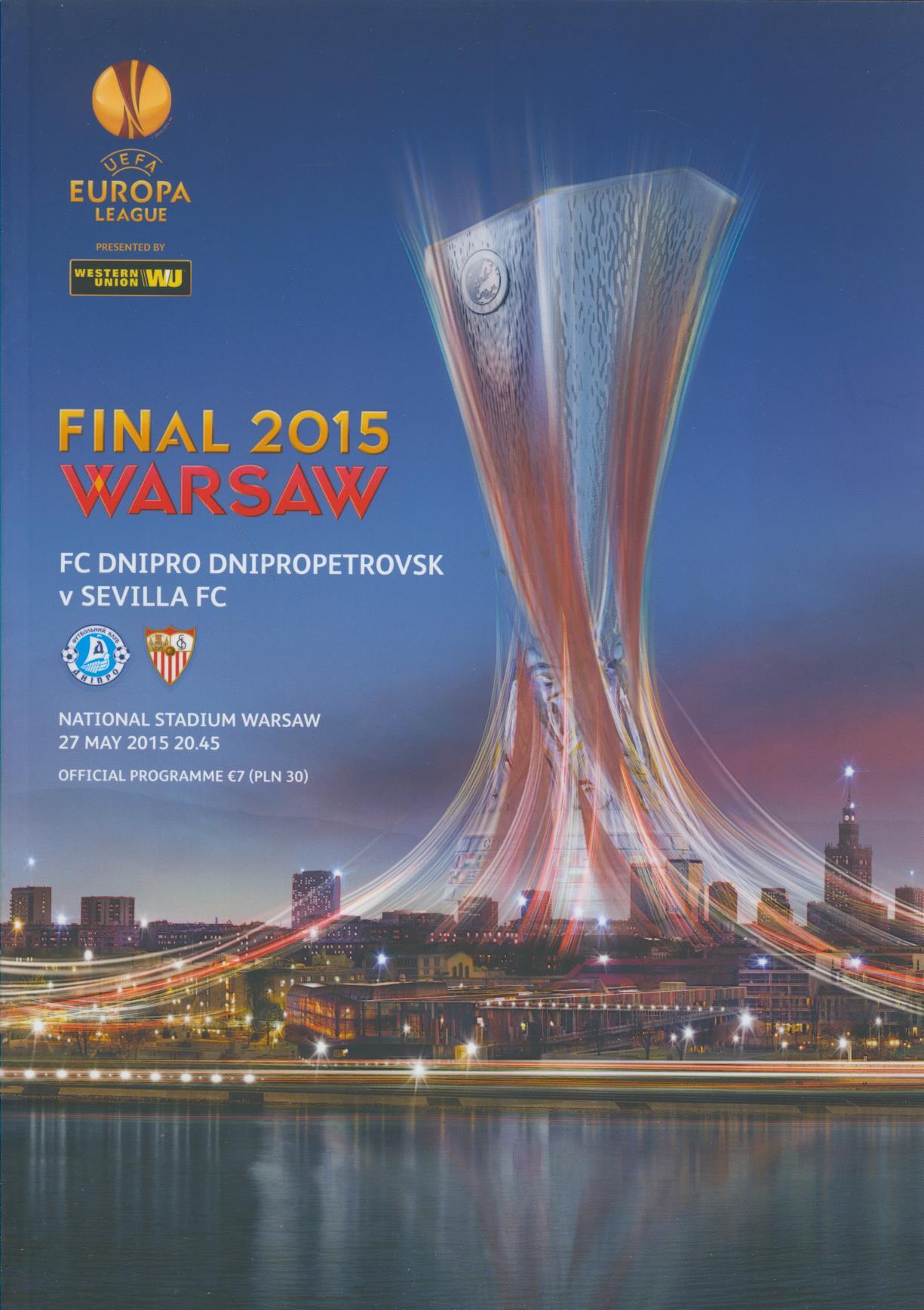 DNIPRO DNIPROPETROVSK V SEVILLA 2015 UEFA CUP FINAL FOOTBALL PROGRAMME