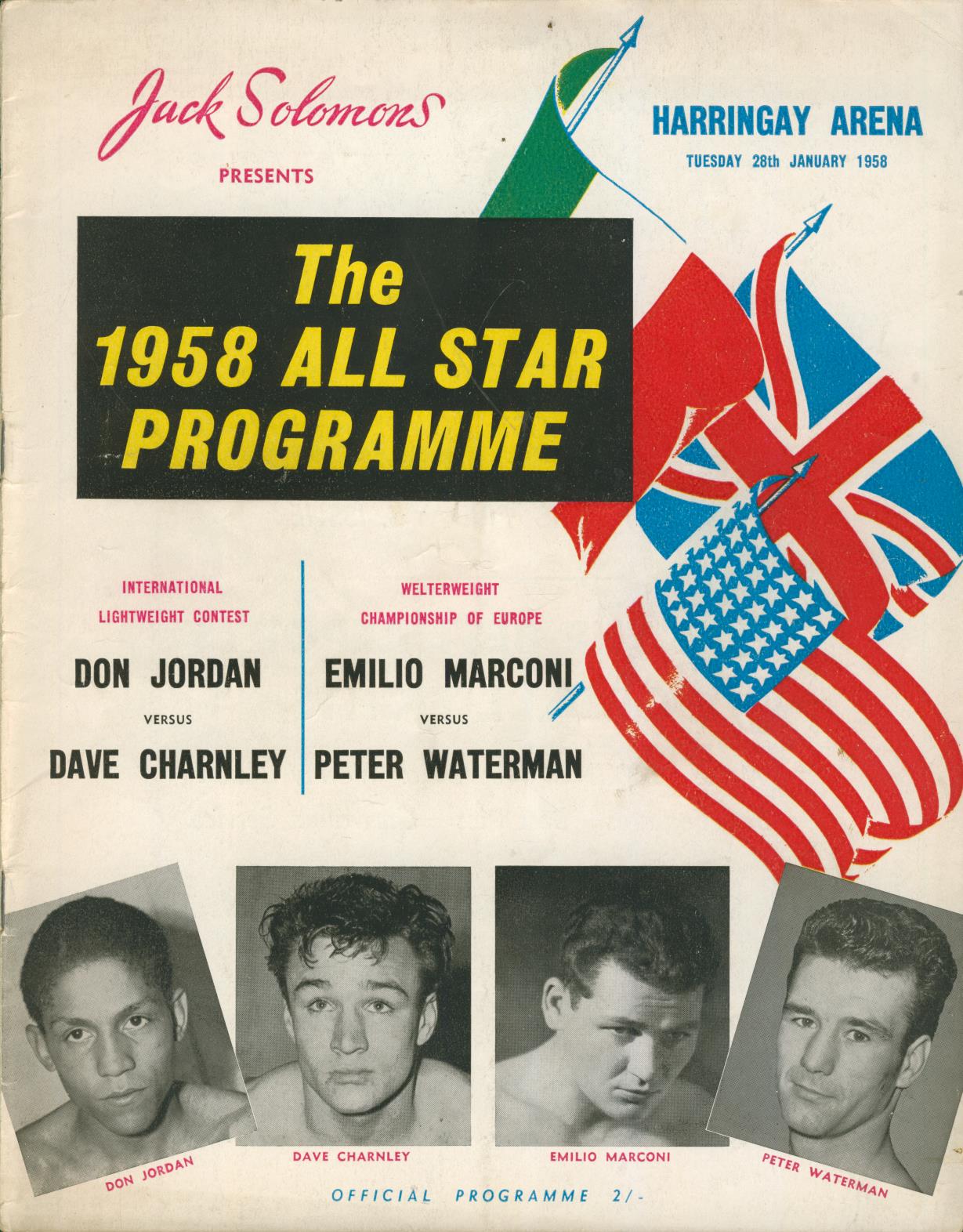 DON JORDAN V DAVE CHARNLEY 1958 BOXING PROGRAMME