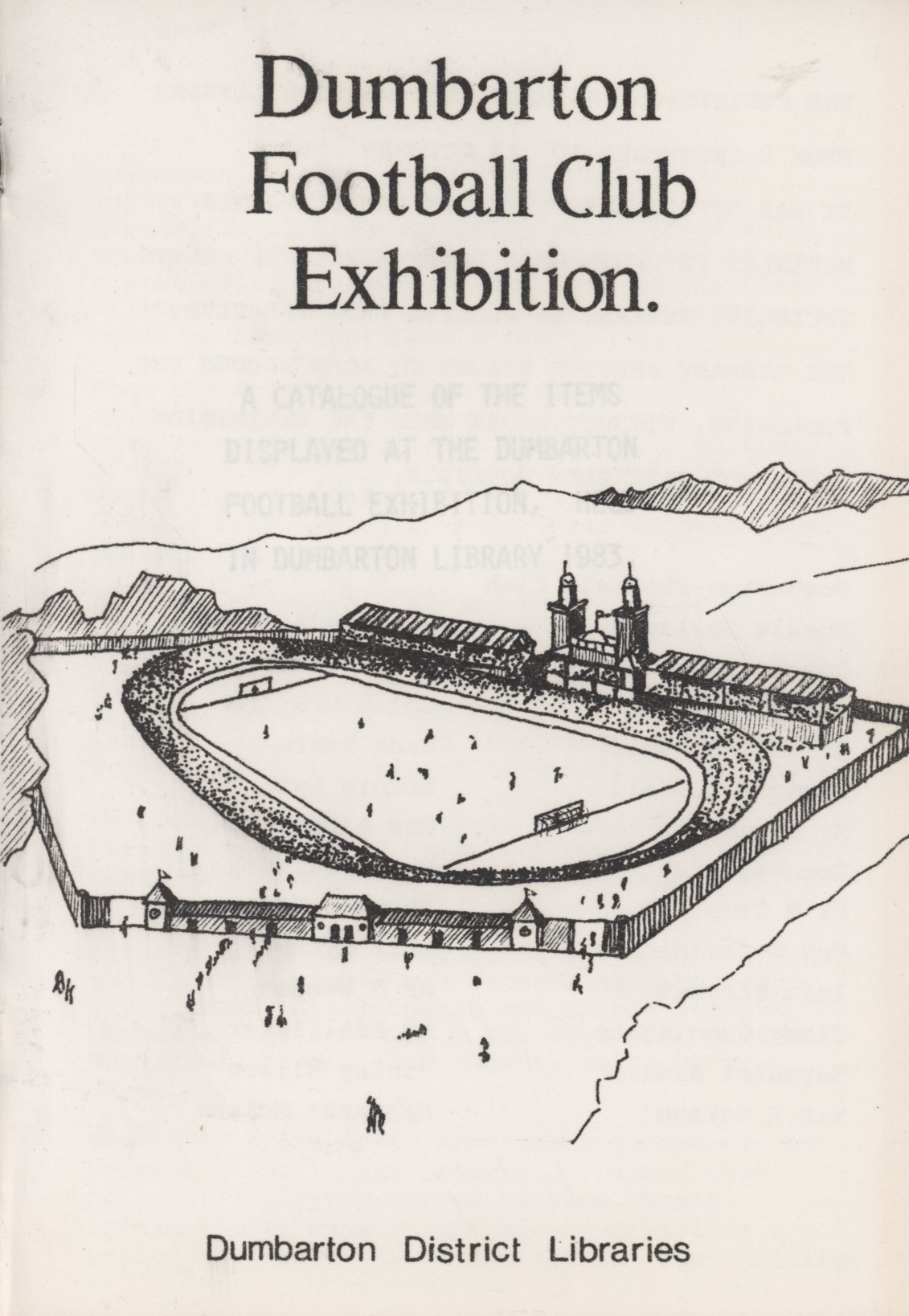 A catalogue of the items displayed at the Dumbarton Football Exhibition, held in Dumbarton Library, with introductory notes and listings of all exhibits which included medals, caps, photographs and archives.