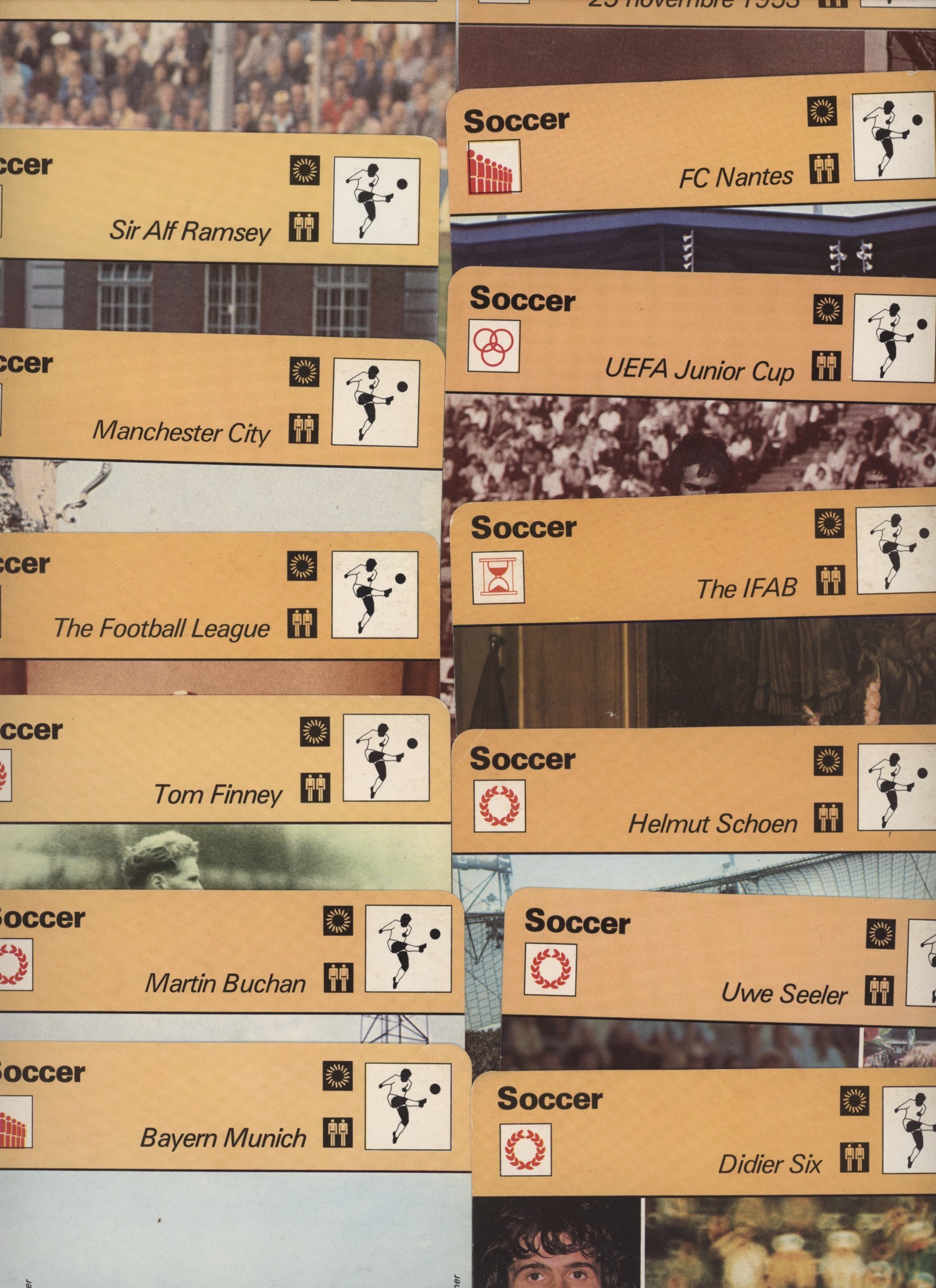 A collection of 30 football (soccer) themed cards from the well-known series published in Lausanne in the 1970s.