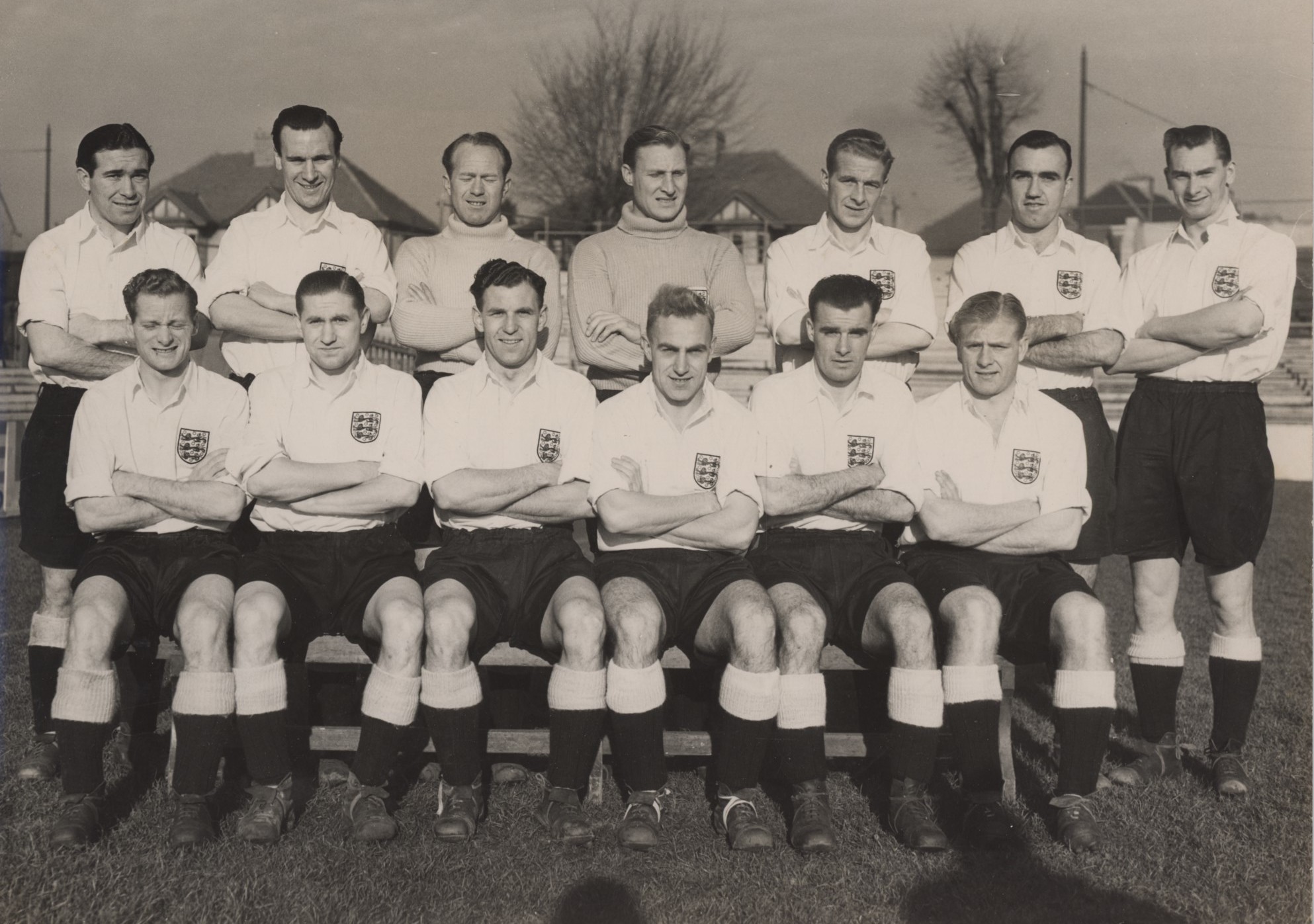 Original black and white Press football photograph of the England team in Brighton the day before their match against Italy at White Hart Lane, November 29 1949. Central Press Photos Ltd, London. The team included Ramsey, Milburn, Finney, Mortensen and Wright.