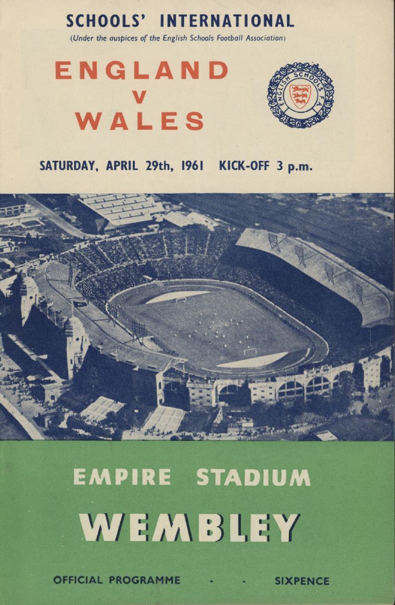 Official programme for the match between England Schools and Wales Schools at Wembley Stadium on 29th April 1961.