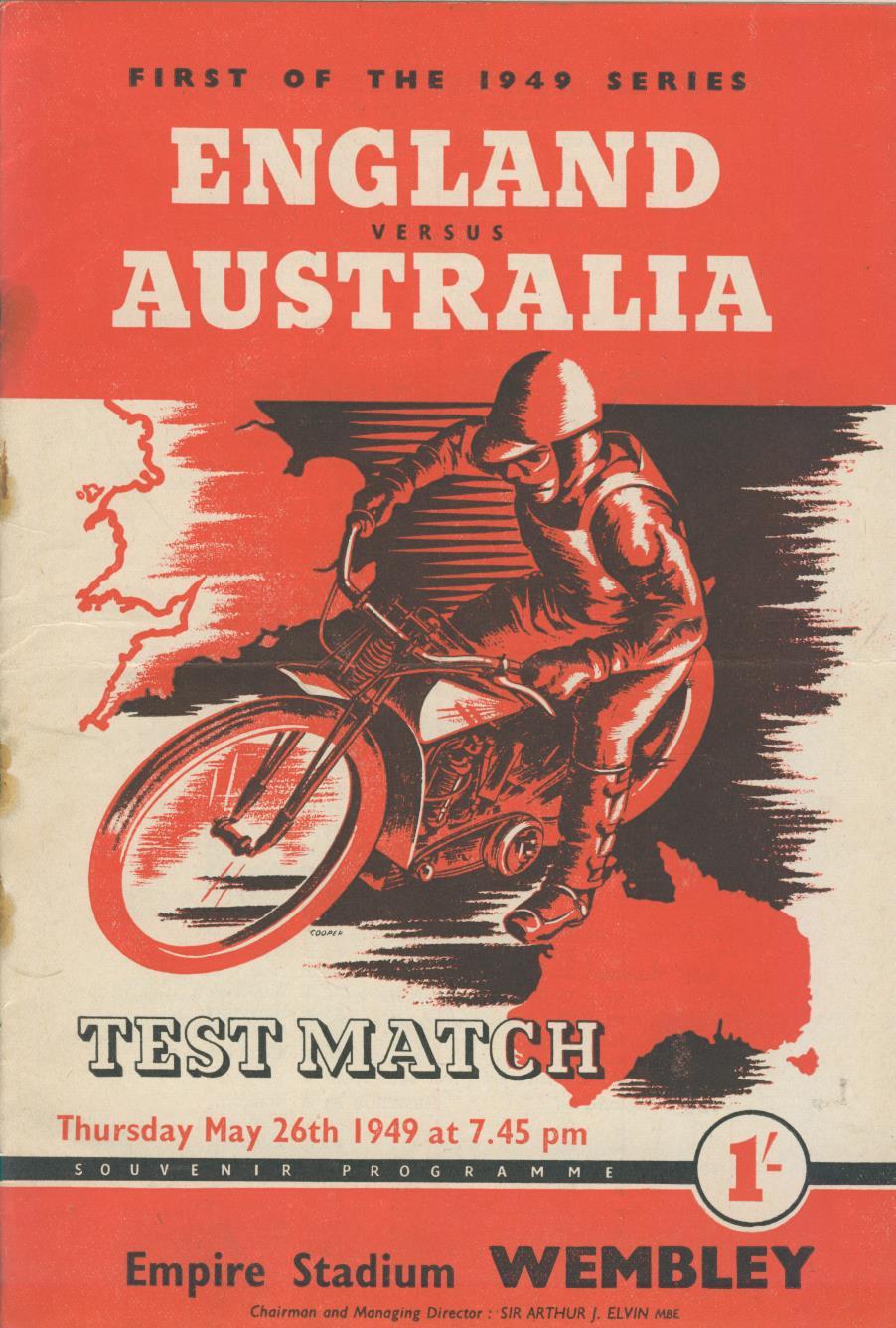 Official programme for the Speedway match between England and Australia, held at Wembley on May 26th 1949.