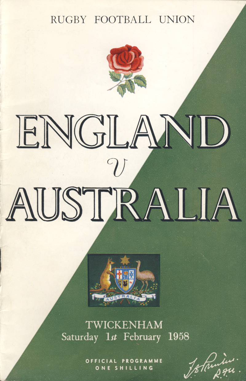 ENGLAND V AUSTRALIA 1958 RUGBY PROGRAMME