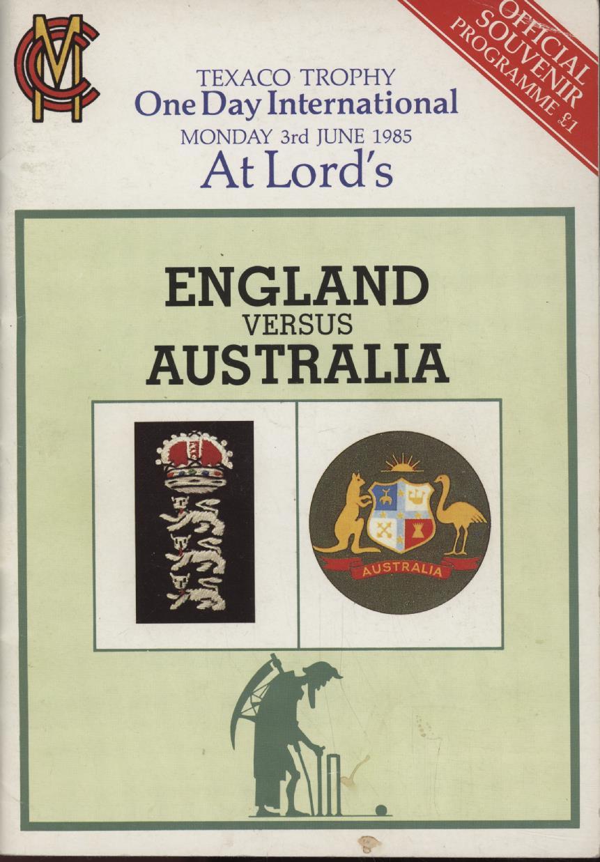 ENGLAND V AUSTRALIA 1985 TEXACO TROPHY (LORD