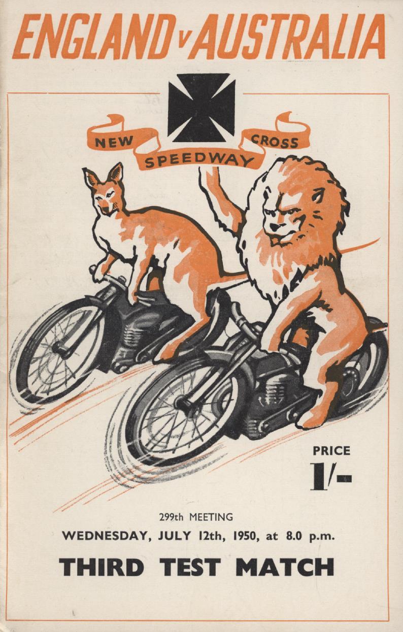 ENGLAND V AUSTRALIA 3RD TEST (NEW CROSS) 1950 SPEEDWAY PROGRAMME