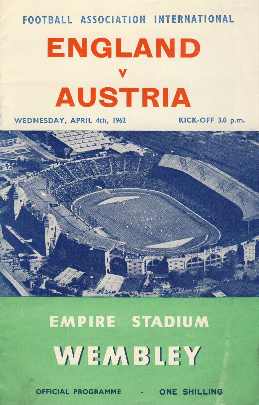 Official programme for the England v Austria international played at Wembley, April 4th 1962 as part of the warm up for the World Cup.