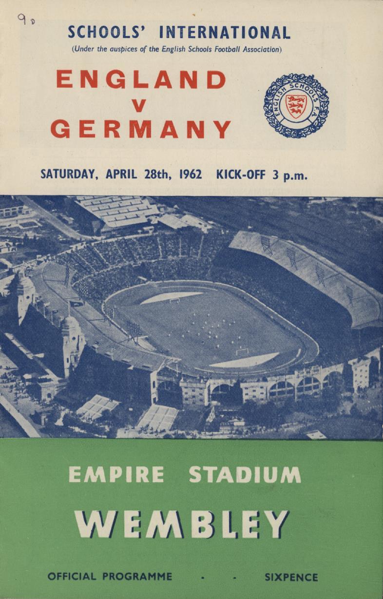 Official programme for the Schools' International between England v West Germany at Wembley on 28th April 1962.