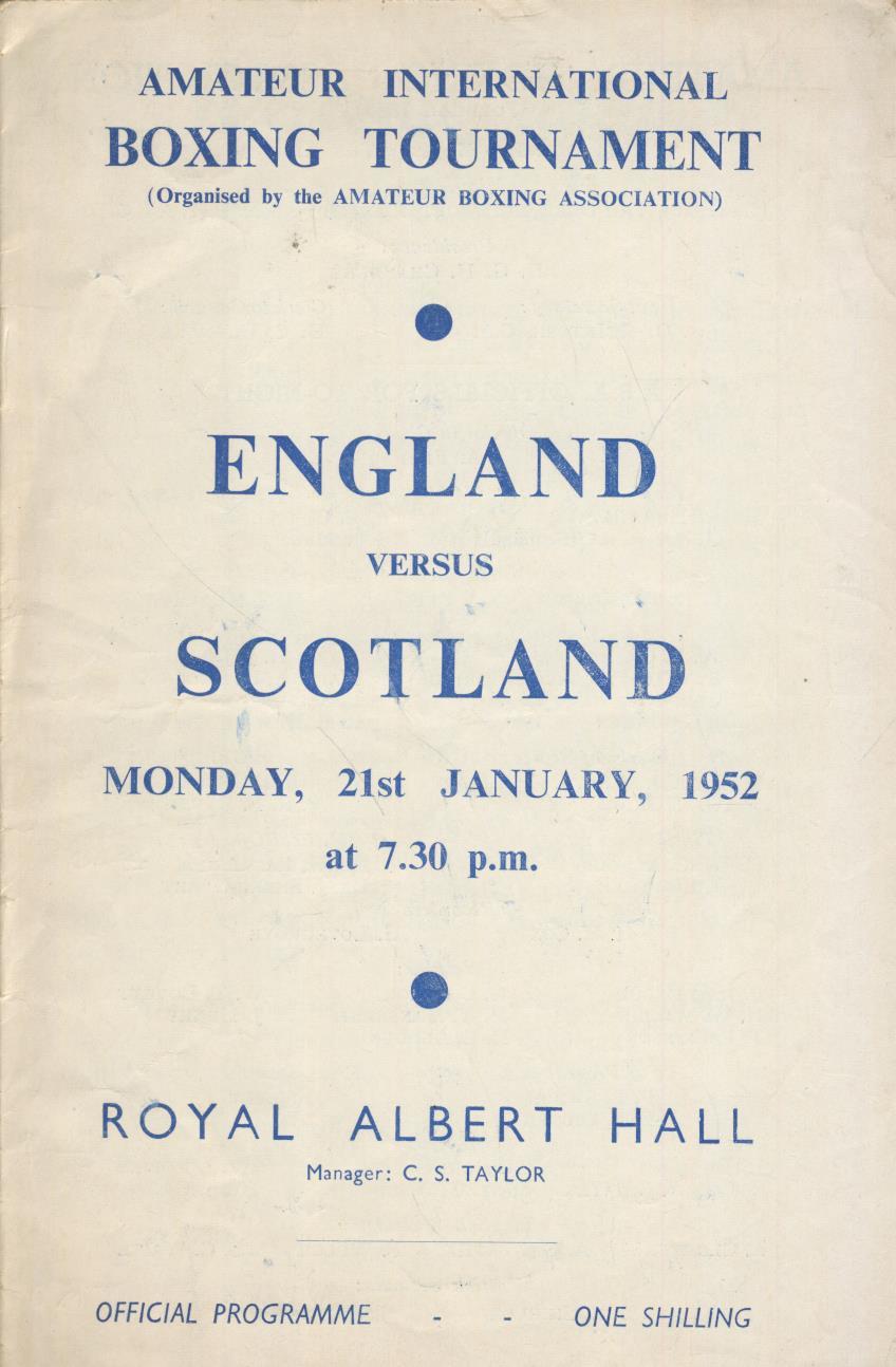The sixth international meeting between the two countries, this time providing an opportunity to impress the selectors for the 1952 Olympic Games. Held at the Royal Albert Hall on January 21st, 1952.