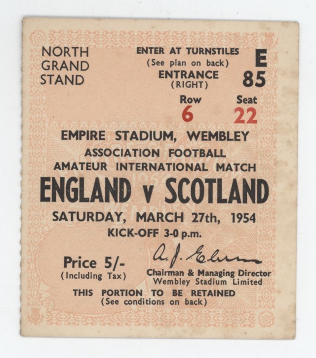 ENGLAND V SCOTLAND 1954 FOOTBALL TICKET