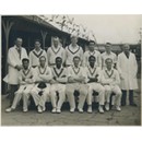 Two cricket photographs showing the teams that played as part of the Kingston Cricket Festival in 1952. The England XI included Poole, Kenyon, Gladwin, Mallett, Jackson, Gibb, Brookes, Fishlock, Howard, Sims and Ikin. The Commonwealth XI included Rickards, Pettiford, McCarthy, Maqsood Ahmed, Dowding, Ramadhin, Livingston, Headley, Barnett, Worrell and Tribe. The Commonwealth XI won by 7 wickets.