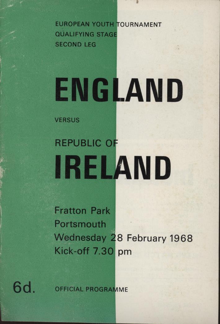 ENGLAND V IRELAND (YOUTH INTERNATIONAL) 1967-68 FOOTBALL PROGRAMME - FRATTON PARK