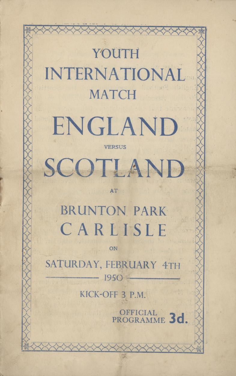 Official programme for the Youth International match played at Brunton Park, Carlisle on 4th February 1950.