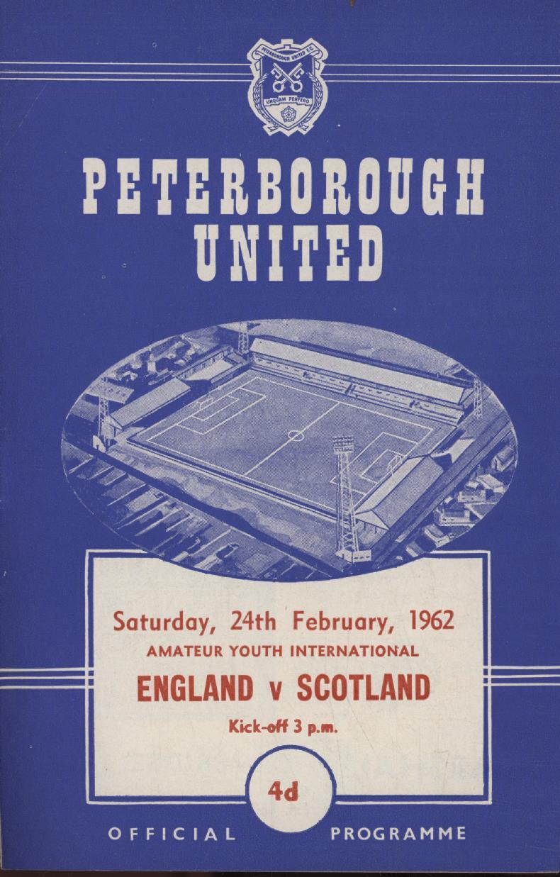 Official programme for the Amateur Youth International match played at London Road, Peterborough on 24th February 1962.