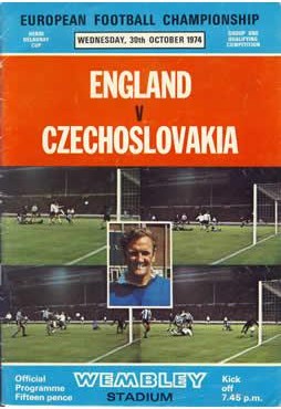 Official programme for the European Championships qualifier between England and Czechoslovakia played at Wembley, October 30th 1974. In the first post-Ramsey international, England won 3-0 against the future European Champions.