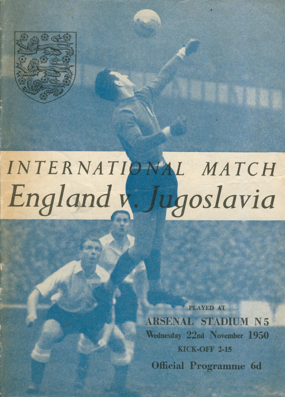 ENGLAND V YUGOSLAVIA 1950 FOOTBALL PROGRAMME (FULLY SIGNED BY ENGLAND)