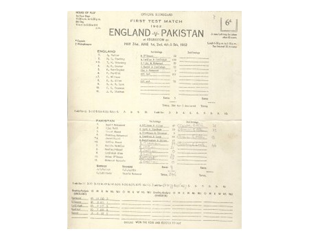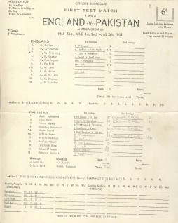 ENGLAND V PAKISTAN 1962 (EDGBASTON) CRICKET SCORECARD