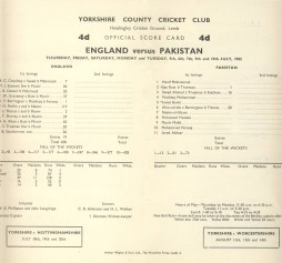 ENGLAND V PAKISTAN 1962 (HEADINGLEY) CRICKET SCORECARD