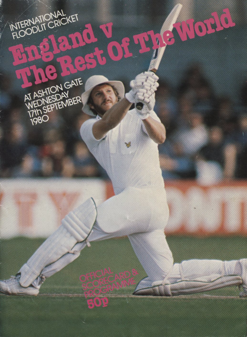 Official scorecard and programme fronm the International Floodlit cricket match played at Ashton Gate on 17th of September 1980.