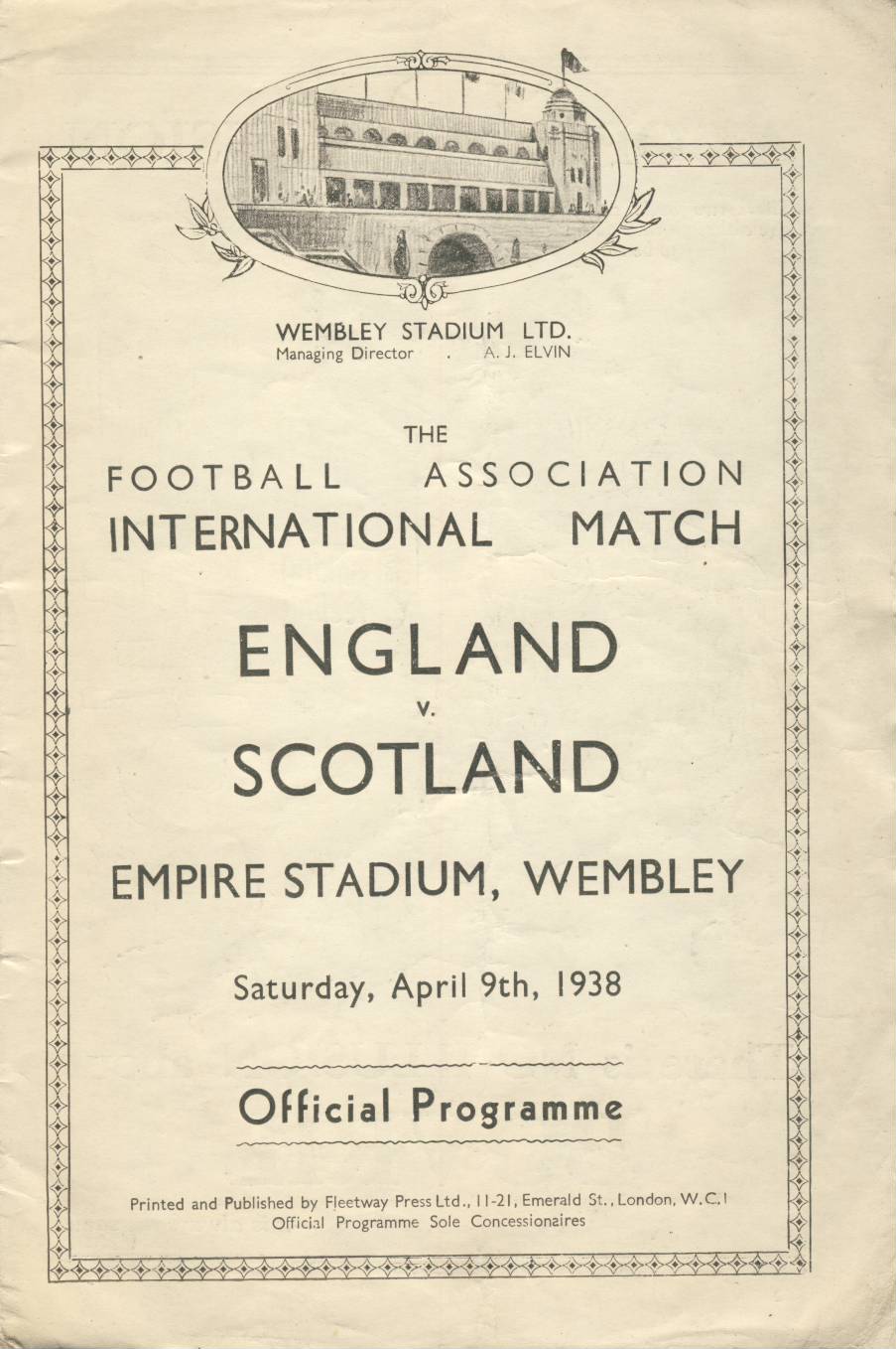 Official football match programme from the game played at Wembley on April 9th 1938.