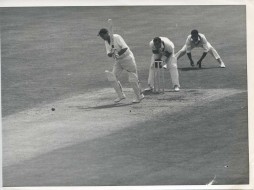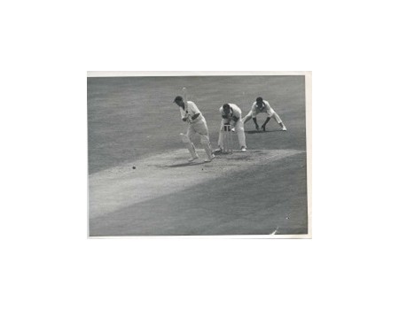 Original Press cricket photograph of Graveney batting during the 3rd Test played at at Trent Bridge, Nottingham 30 June to 5th July 1966. West Indies won by 139 runs. Jackie Hendriks looks on from behind the stumps.