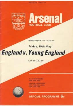 Official programme for the England v Young England representative match played at Highbury, May 19th 1967.