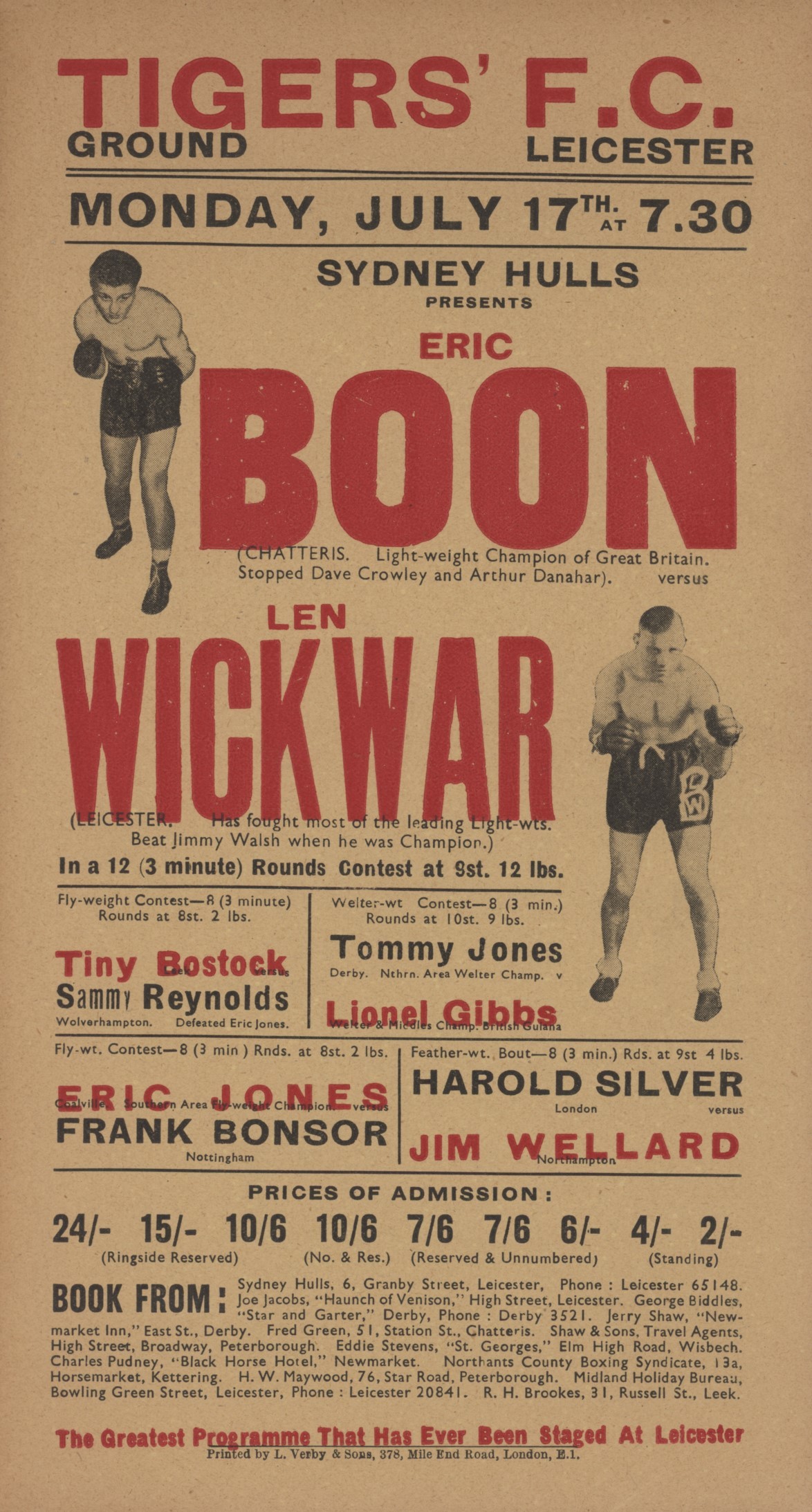 Original boxing flyer for the fight held at Welford Road, Leicester, on July 17th, 1939.