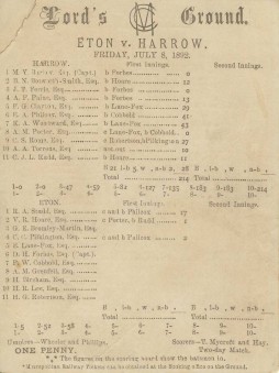 Cricket » Cricket Scorecards » Schools/Universities » ETON V HARROW 1892