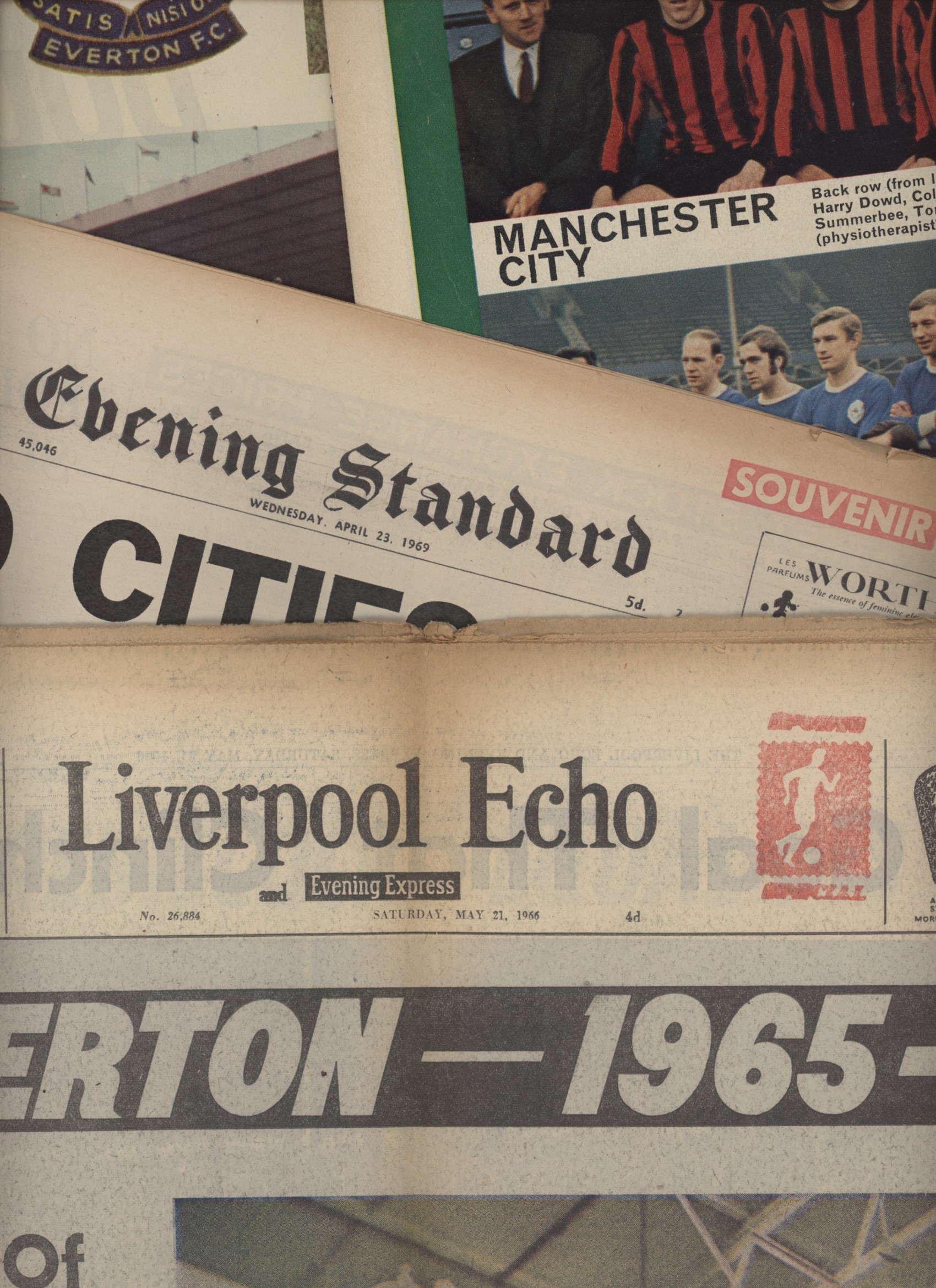 Nine broadsheet newspaper specials, including Liverpool Echo and London Standard, covering and previewing classic F.A. Cup Final matches from the following years: 1966 (Everton + Liverpool winning the League); 1968 (West Bromwich Albion); 1969 x 2 (Manchester City); 1970 (Chelsea win Old Trafford replay); 1971 (Arsenal); 1977 (Manchester United); 1978 (Ipswich); 1982 (Spurs).