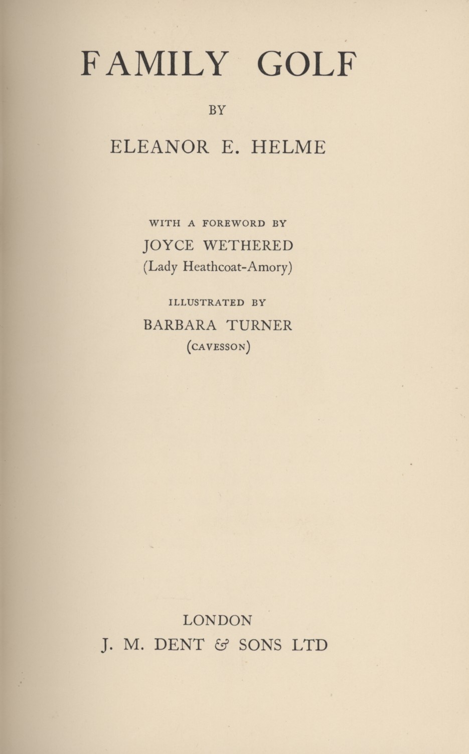 Entertaining 1930s golf novel describing the careers of a young family, their friends and relations, set in Scotland and Surrey and demonstrating how intelligent play wins the day, with evocative period drawings.