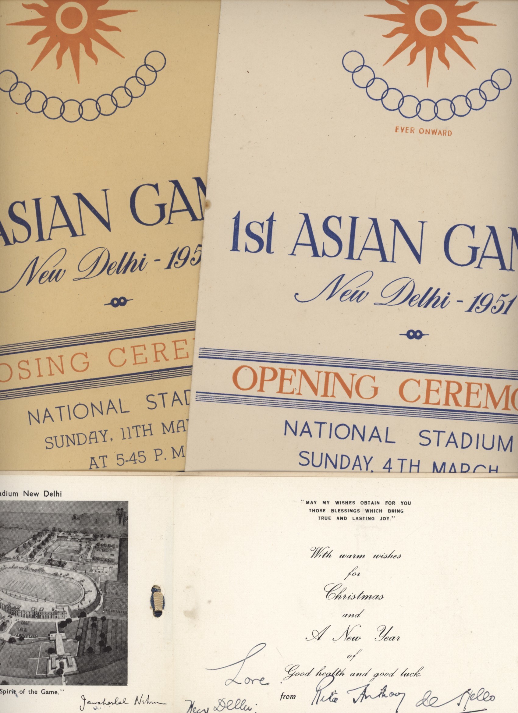 Other Sports » Olympics & Athletics » Olympics & Athletics Booklets » General Athletics » FIRST ASIAN GAMES, NEW DELHI 1951- OFFICIAL SOUVENIR GUIDE, PROGRAMMES AND OTHER ITEMS (6 IN TOTAL), INCLUDING SIGNED CARD