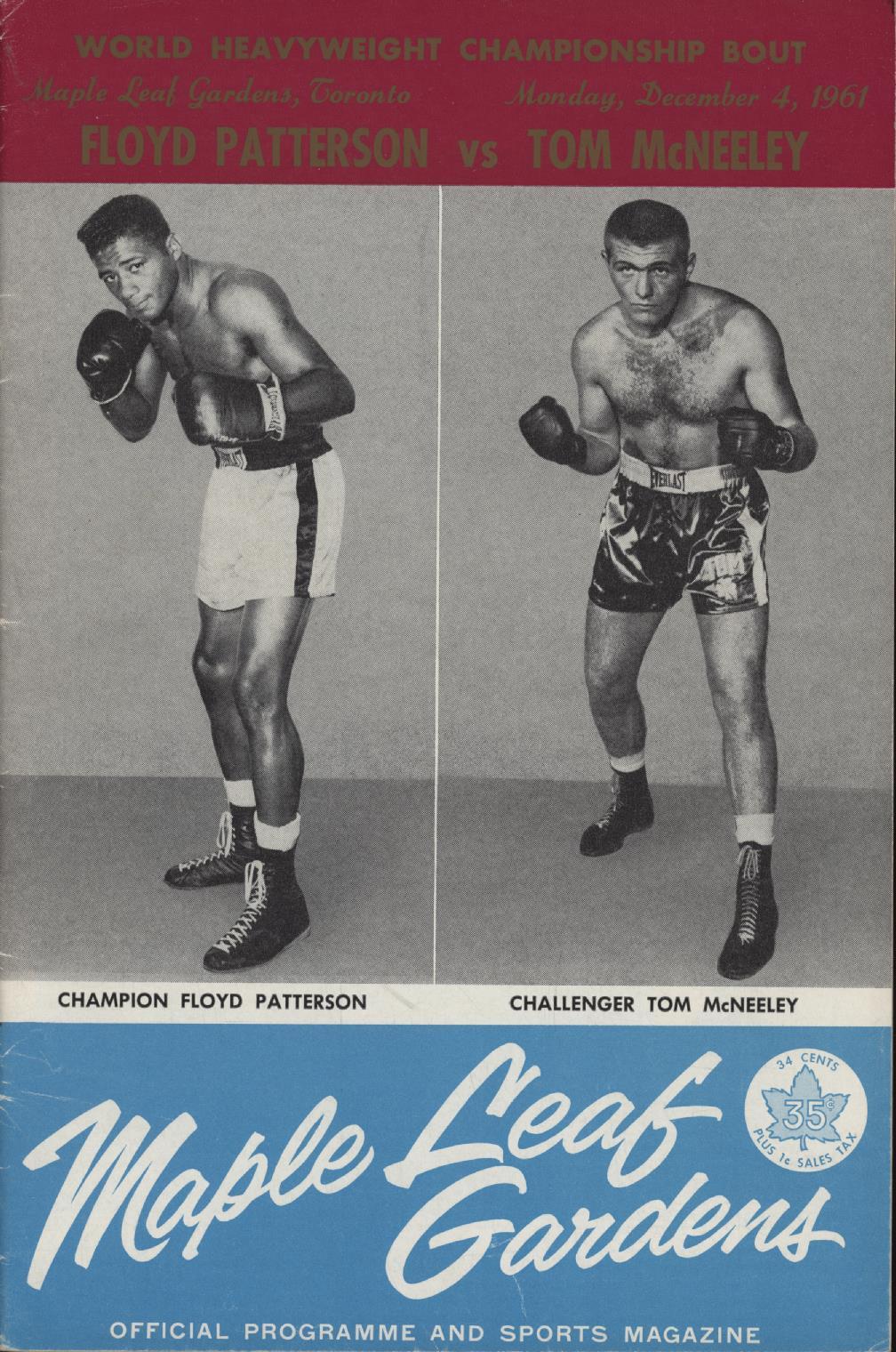 Programme for the World heavyweight contest in Maple Leaf Gardens, Toronto, December 4th 1961.
