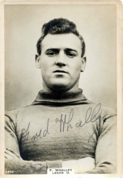 Large "Pinnace" card, series number 2440. Whalley played for Leeds as goalkeeper from 1921-24. He also played for Preston and Fulham. 15 x 10cm. Rounded corners. Very good.