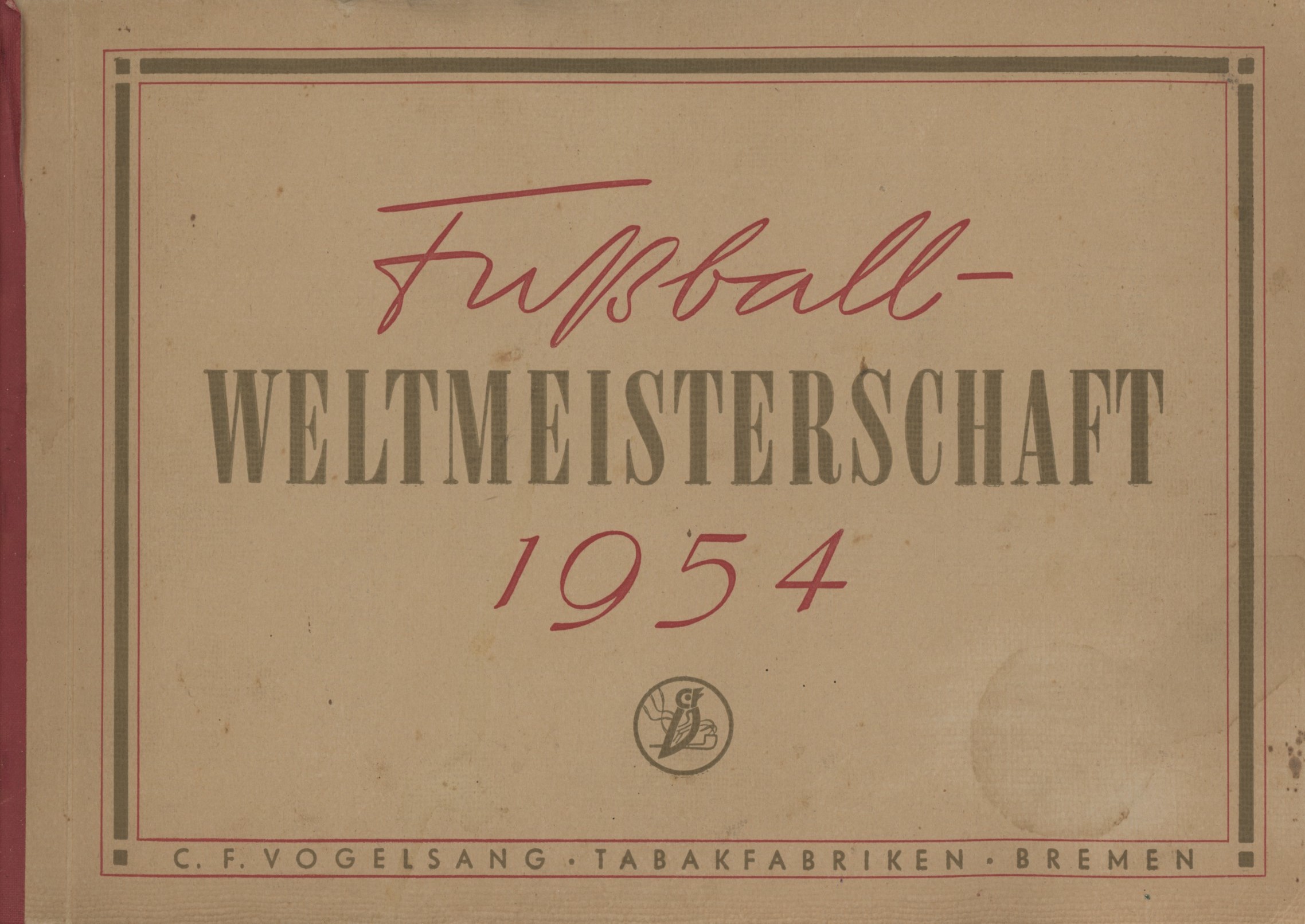 The story of West Germany's victory in the 1954 World Cup Finals in Switzerland told game-by-game and partly forming an album for cigarette cards, all have which have been collected and attached. Published in German.